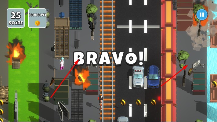 1、操控极简反应为王:仅需滑动屏幕控制方向,人物移动响应迅速流畅,却极度考验对时机的把控,一秒之差可能错过安全间隙,让挑战充满纯粹的反应乐趣。