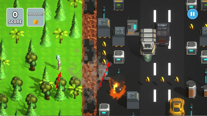 2、滑动移动避危机:找准时机后滑动屏幕,控制人物小步移动,遇到车辆逼近时快速横向闪躲,经过安全区时注意脚下是否有障碍物,确保每一步都踩在安全区域。