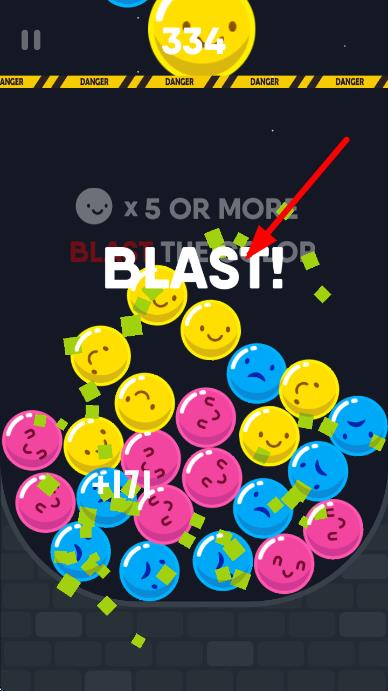 3、当有“x5 OR MORE BLAST THE TOP”提示时,凑齐5个及以上同色小球,触发消除,获取高分。
