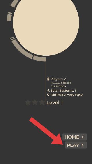 2、显示第一关的关卡页面,标注了3颗星,玩家可点击PLAY进入到游戏场景内进行游玩。