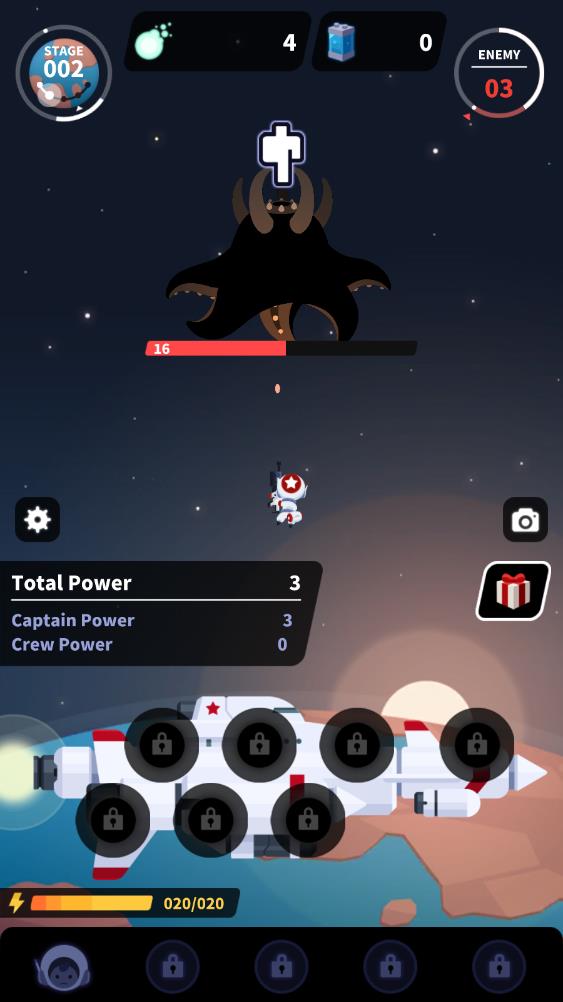 2、轻松放置模式:采用自动攻击机制,舰长与同伴无需手动操控即可持续战斗,闲置时也能积累进度,搭配点击触发的额外攻击,平衡轻松体验与操作互动。