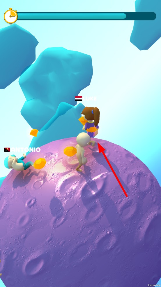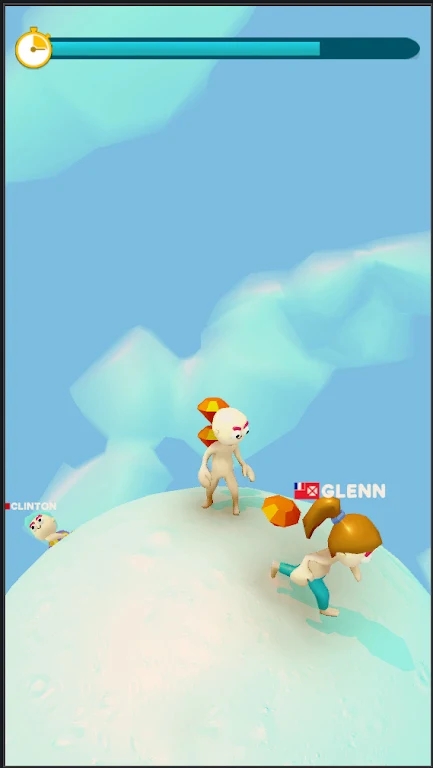 终极大盗是多人实时竞技手游,玩家操控萌趣小人在漂浮星球表面冲刺,收集发光宝石时可撞击干扰对手,倒计时结束后凭宝石数量冲击排行榜,卡通低模风塑造色彩明快的星球与肢体夸张的角色,碰撞时的滑稽翻滚,让快节奏资源掠夺战充满欢乐博弈。