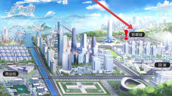 2、在城市地图中,需要前往标有红色感叹号的影视城区域,触发新的剧情,培养自身的属性加成。