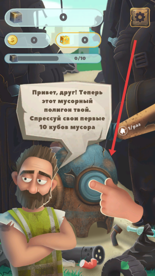 1、进入到游戏后,按照指引需要收集10个垃圾立方体,完成初始任务,开启垃圾场经营流程。