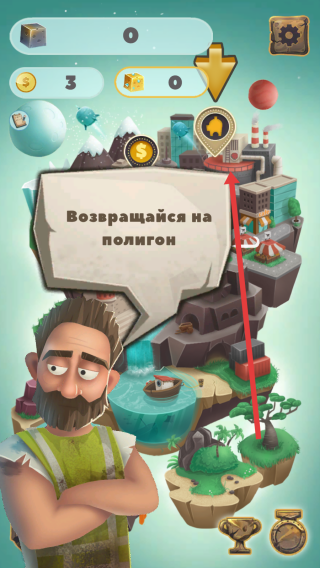 3、在世界地图中,根据箭头指向处,通过点击营地标识,返回垃圾场,继续后续的垃圾处理任务。