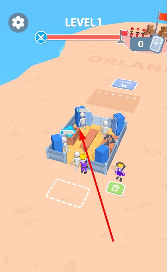 1、使用金币解锁基地,到站台引领人员前往基地,成功成为步兵后,向着敌人的基地发起进攻。
