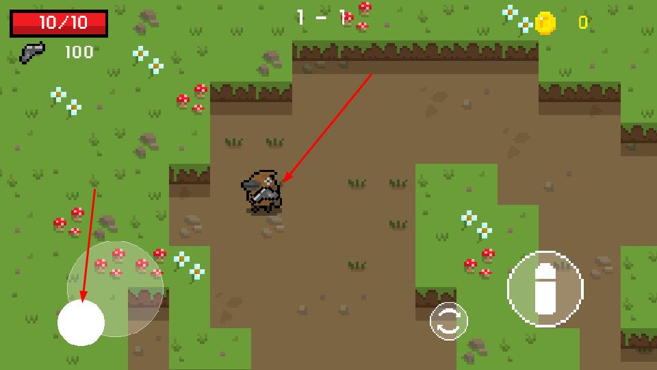 1、点击启动界面黄色start按钮,进入1-1森林关卡,角色初始血量满值,武器数值清晰显示,开启像素风冒险之旅。