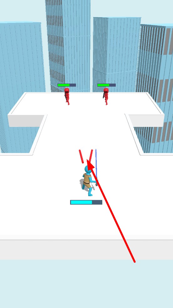 1、进入关卡后,通过虚拟摇杆控制移动方向,敌人会进行射击,当被射击到时,角色会自动反弹子弹回去。