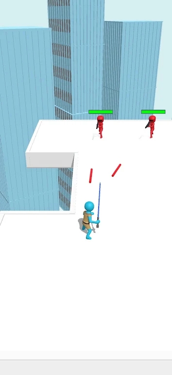 军刀防御是一款高空天台题材的快节奏动作闯关游戏,玩家操控持械蓝战士,在摩天楼间的狭小平台与红甲敌兵死斗,通过预判攻击前摇、极限闪避后接连招,清空关卡敌人追求GREAT评价,从基础杂兵战逐步挑战带特殊机制的BOSS,解锁火焰军刀等特效皮肤与隐藏连击成就 。