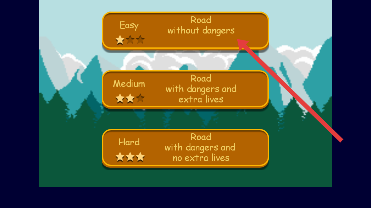 1、难度选择点击最上方Easy-Road without dangers,开启无危险的简单关卡,适配新手操作。