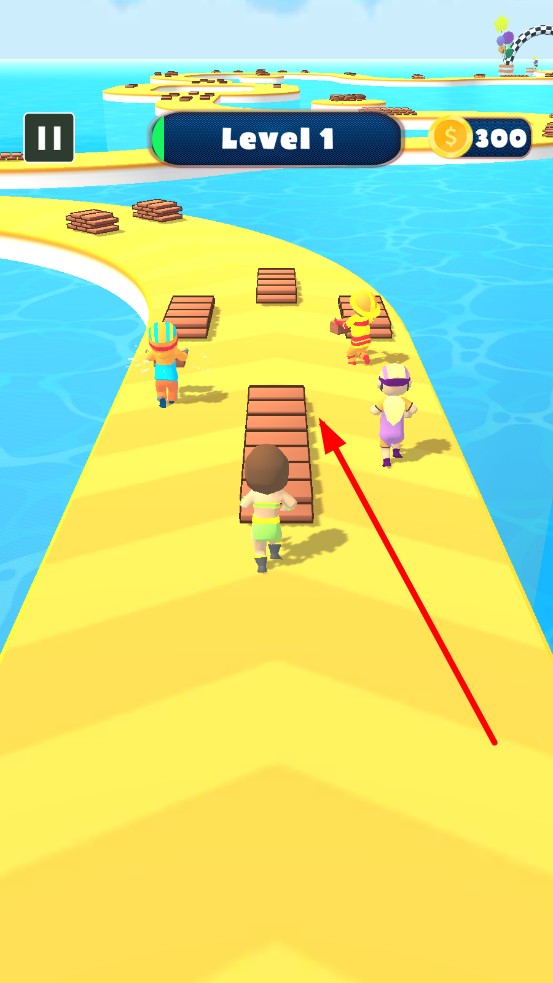 2、预估木板的数量,直接搭桥,在木板用完时,还会在空中延长跳跃距离,玩家需要利用木板,使自己拿到靠前名次。