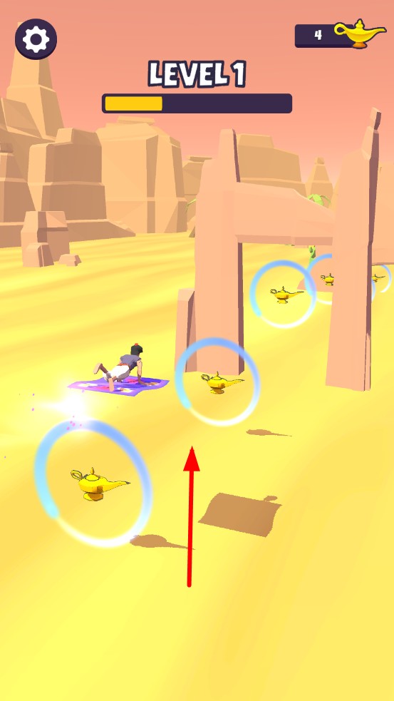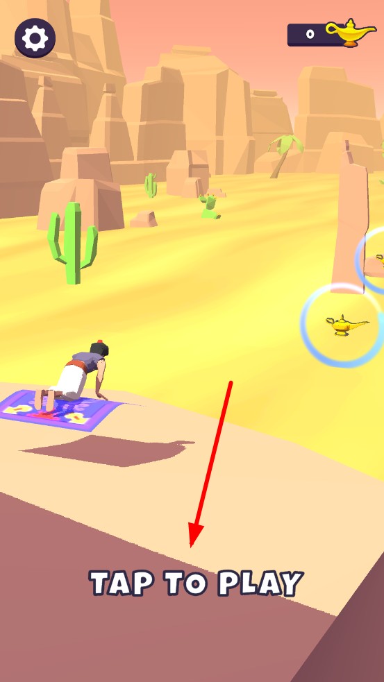 1、点击TAP TO PLAY开始游玩,上下滑动屏幕,控制魔毯飞行位置,路途中会经过道具和障碍。