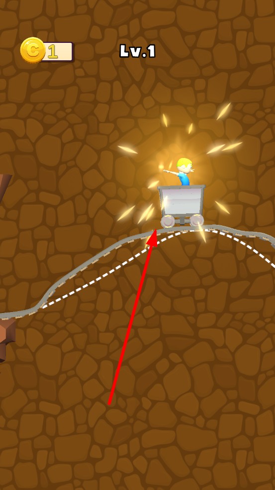 1、隐藏金币彩蛋:轨道阴影处、断层下方常藏隐藏金币,需故意让矿车碰撞边缘弹跳,或利用弹射余势探底收集,解锁后获双倍金币奖励,考验探索欲。