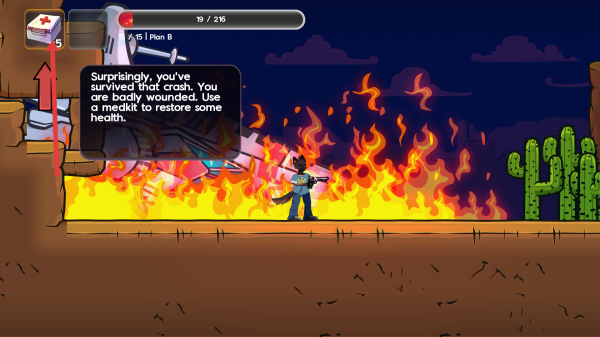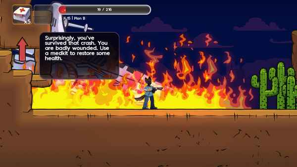 2、关卡战斗闯关:在2D关卡中跳跃、冲刺避开障碍,运用武器射击击败敌人,留意隐藏秘密,通过不断推进关卡提升角色,为挑战更强大的敌人和boss做准备。