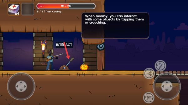3、靠近互动标识INTERACT,点击对应按钮,获取道具比如武器,增强战力,推进游戏的流程。