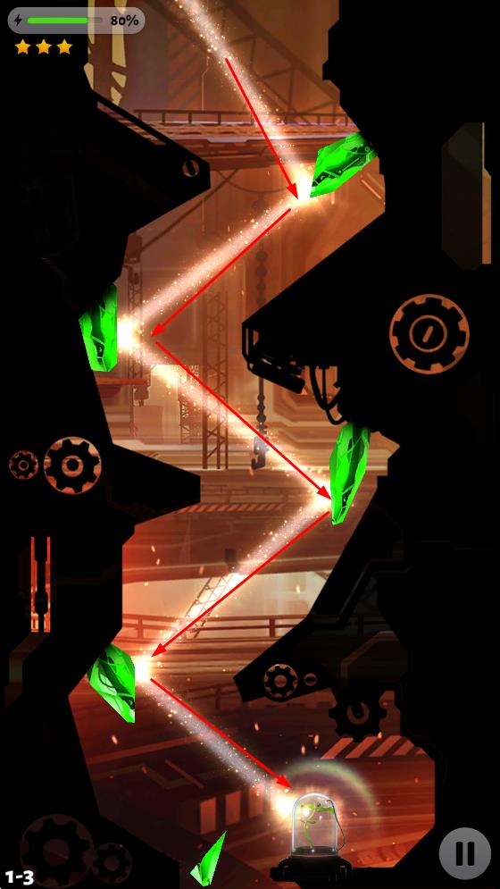 3、凭策略运气过关注标:每关需通过切割晶体让光线成功反射至指定目标,过程中既需运用对折射角度的理解设计切割方案,又需接受晶体掉落的随机性带来的运气成分。
