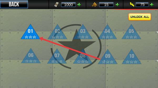 2、点击选择标有01的蓝色三角关卡,进入该关卡的战斗场景,正式开启第一关的挑战之旅。