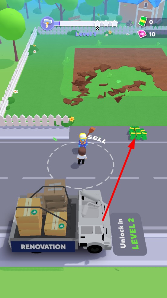 3、成功通关后,去往下一个房屋,进行新的刮土块工作,增加新的石块和新的环节,应对更多挑战。