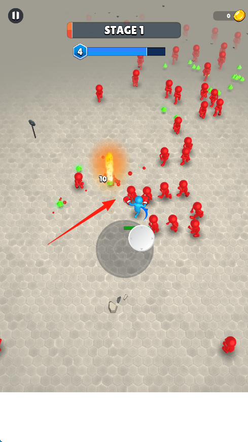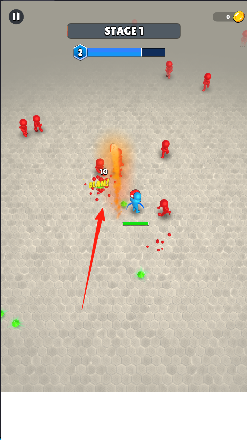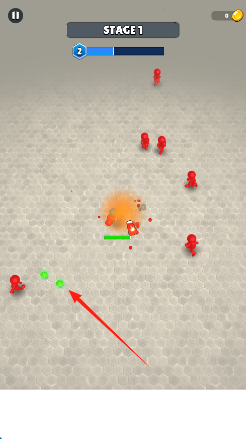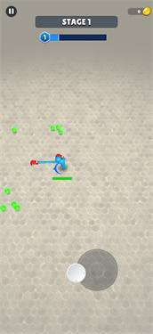 3、随着关卡的推进,敌人的数量会大大增多,利用道具技能,清理红色火柴人,完成STAGE1挑战。