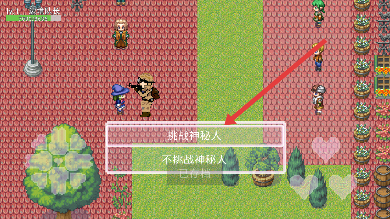 2、可以场景中的所有NPC进行交流对话,与神秘人对话后,选择挑战神秘人选项,触发与神秘人的战斗事件。