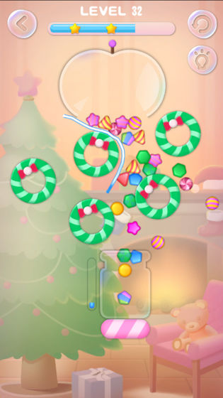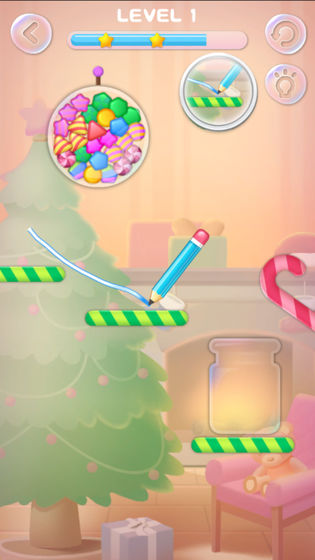 3、画线机制操作简单,却拥有极高的自由度,利用不同的线条构图引导糖果落入瓶中,形成玩法上的多样变化。