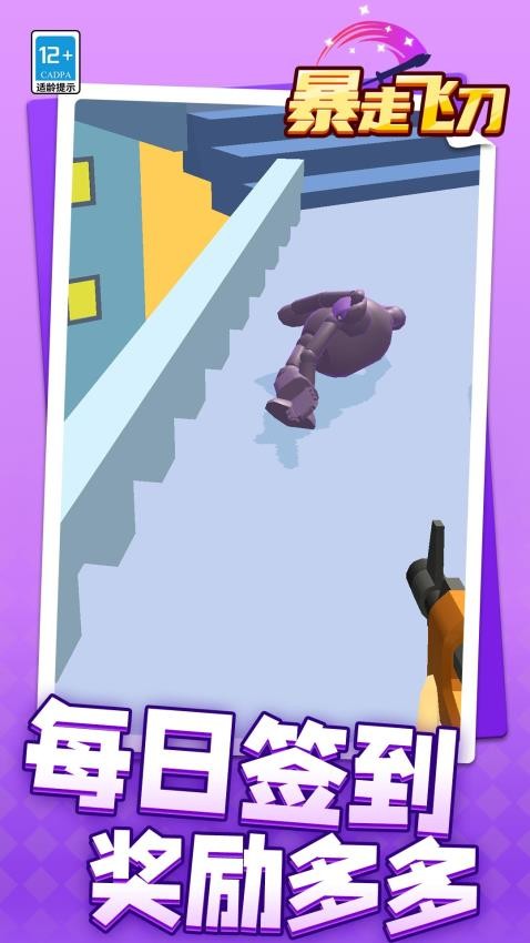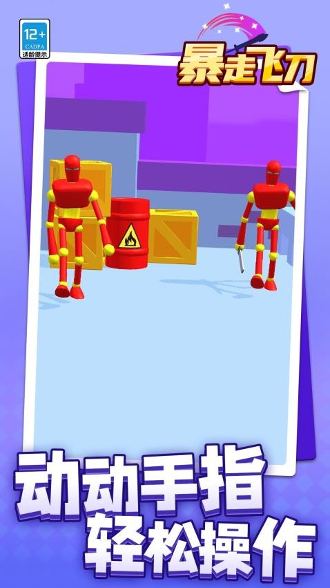 2、快节奏的投掷对战玩法,操作简单易上手但富有技巧性。需要预判敌人走位并计算飞刀轨迹,在闪避与进攻间找到平衡点。