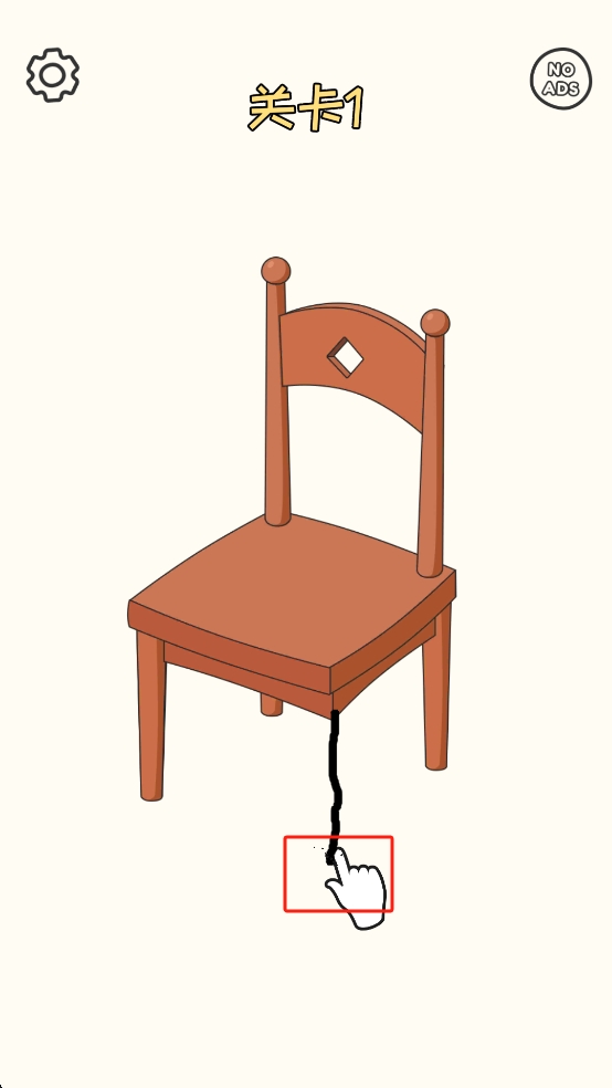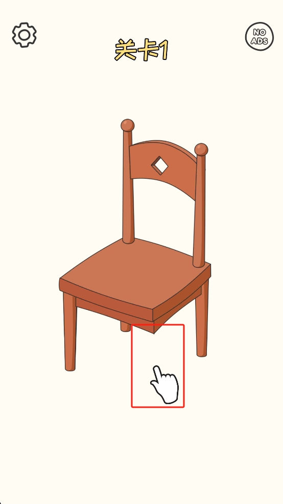 1、屏幕呈现一把缺腿木椅,留意下方手指指引区域,这是关键修复点,点击该位置开启椅子腿的修复流程。