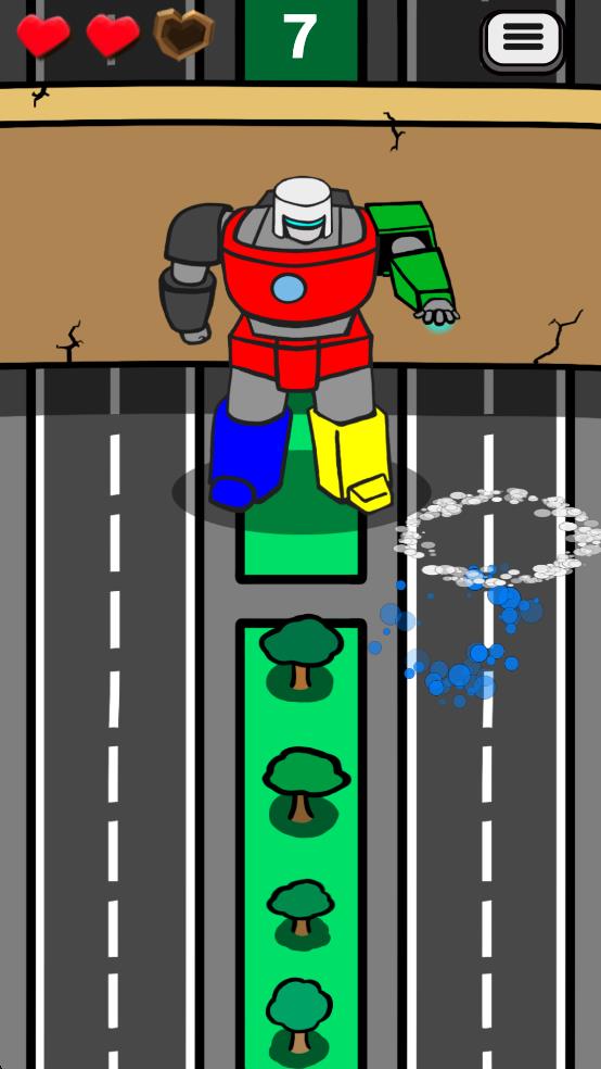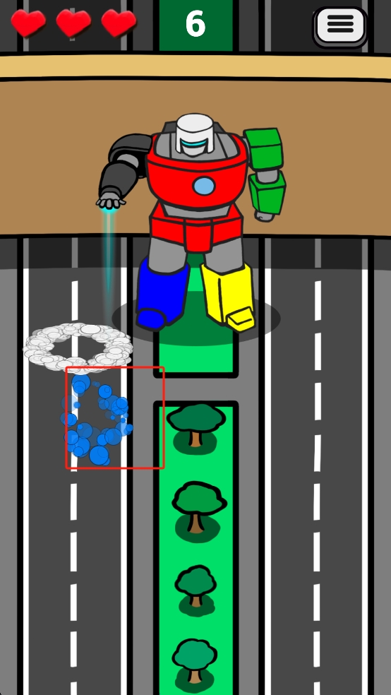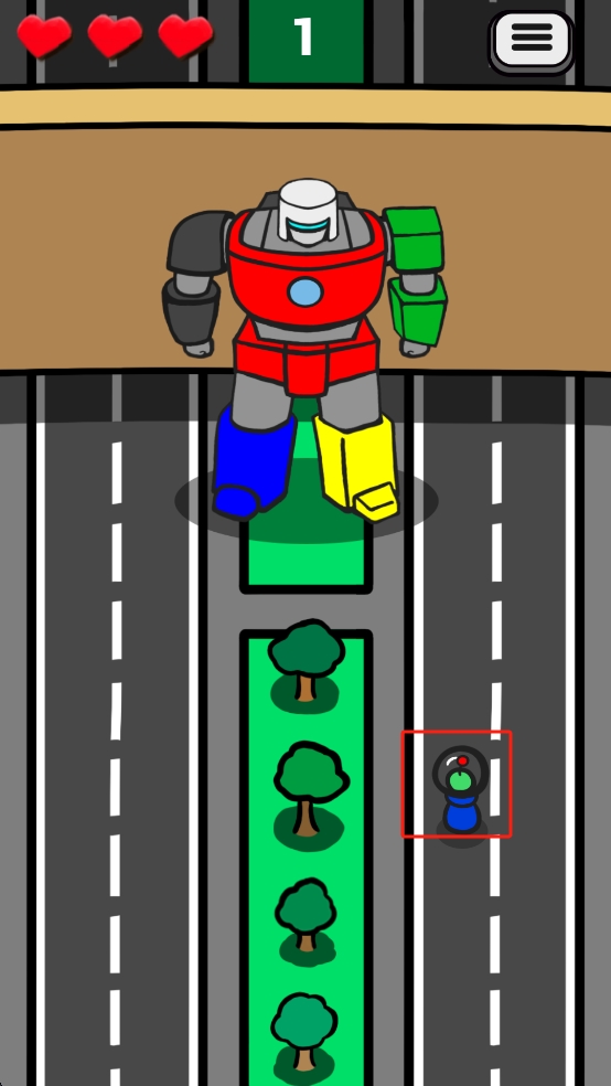 1、进入作品后,看到巨型机器人与蓝色小机器人,我们的任务目标就是击杀下方的小机器人,别让他靠近身后的墙体。