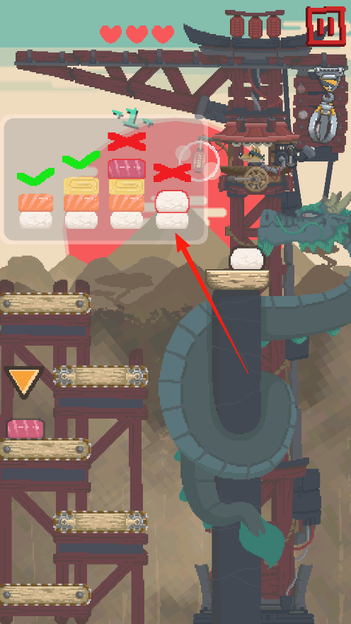 3、控制精准重时机:玩家通过爪子在正确时间抓起和放下巨大寿司,顺序是组装塔和得分的关键,需明白尤其在速度加快时精准把握时机是成功的关键。