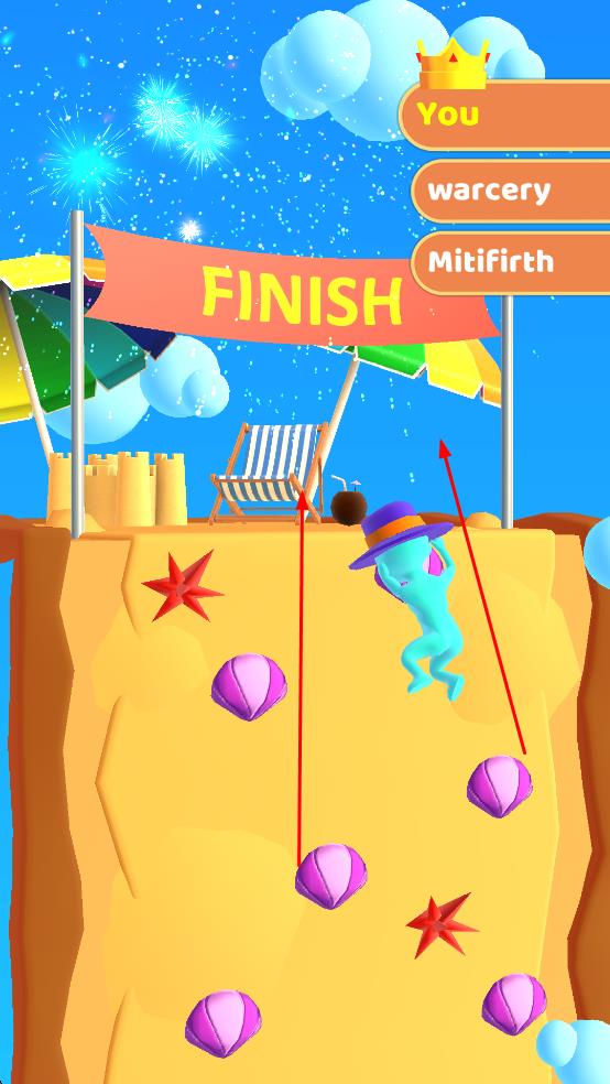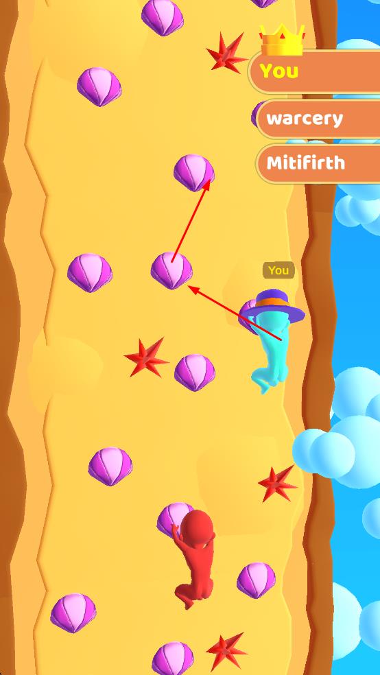 2、规划攀爬路径,借助贝壳跳跃,超越其他玩家,保持领先优势。