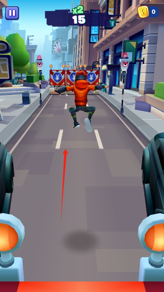 3、遇到较高或较难躲避的障碍物时,向上滑动屏幕,让角色跳跃越过障碍物,继续前进。