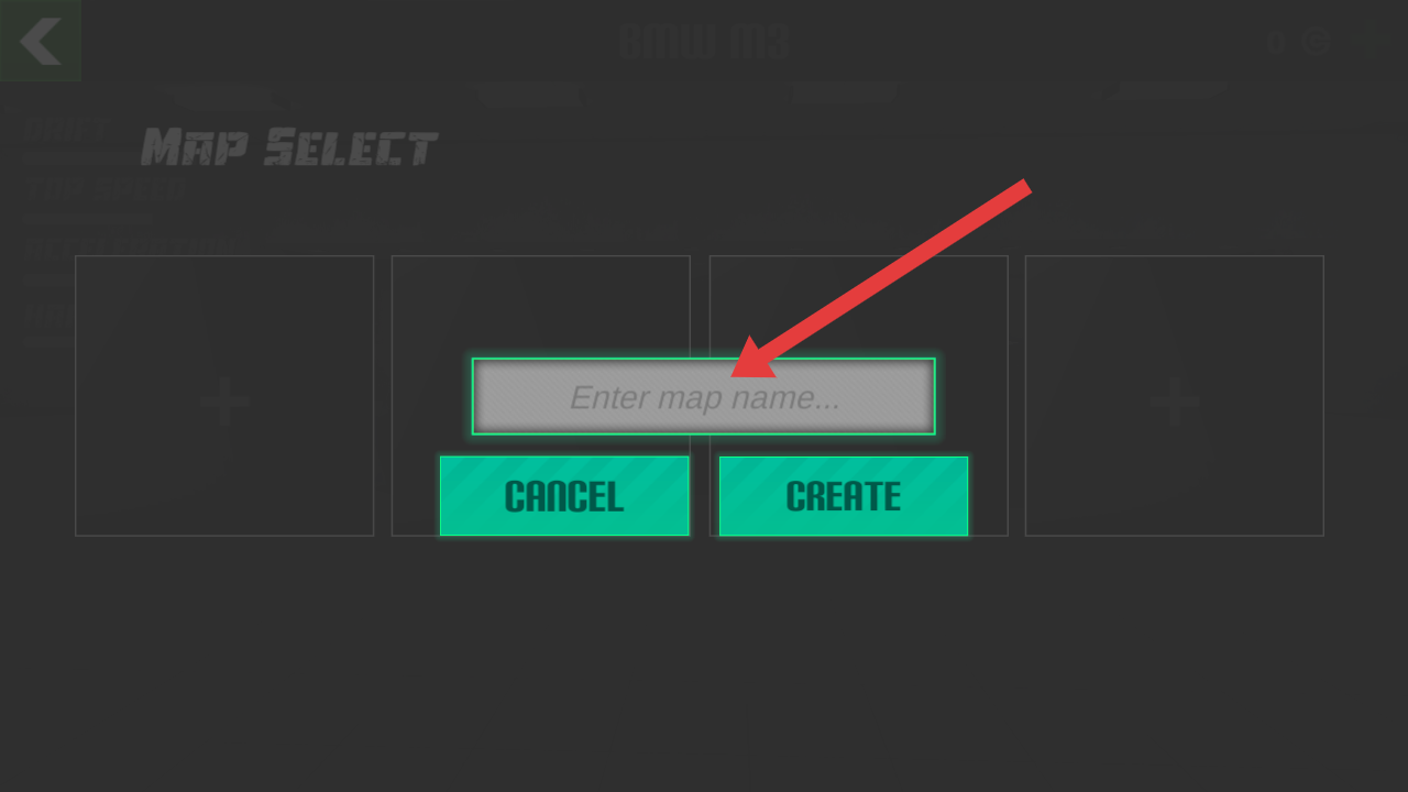 2、在Map Select的界面,点击Enter map name...输入框填写名称,再点CREATE进行生成新的地图。
