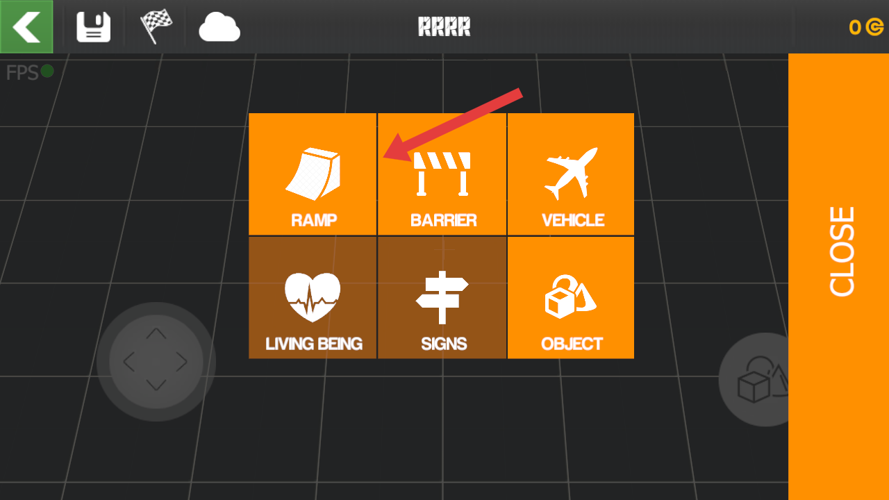 3、进入生成的新地图,可以选择添加元素,进入编辑界面,点击橙色RAMP图标,为赛道添加坡道组件。