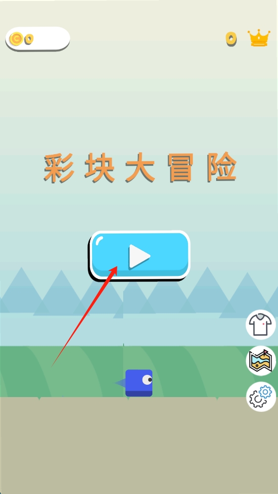 1、启动界面,点击蓝色播放按钮,开启彩块大冒险之旅,点击按钮开始当前的游戏内容。
