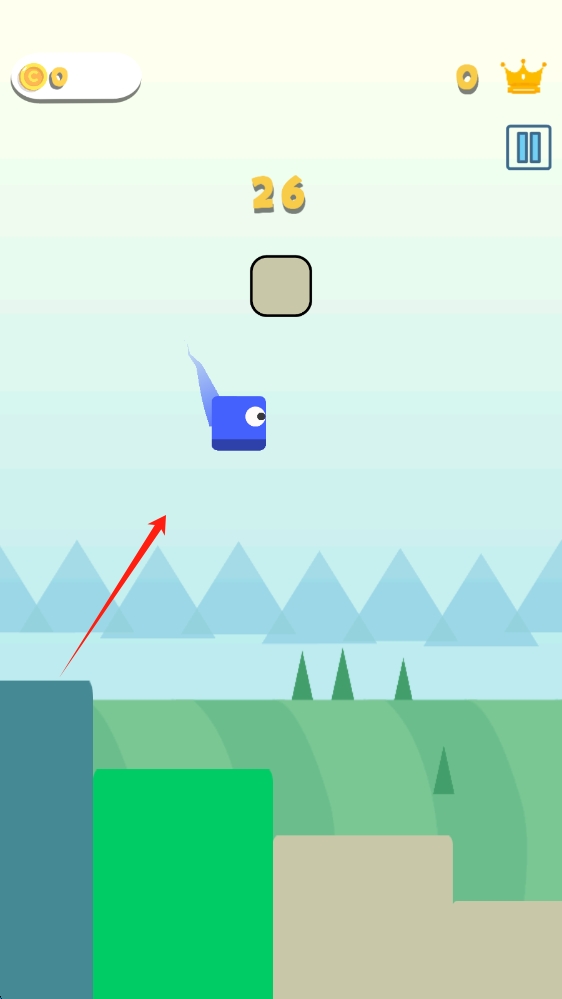 2、游戏关卡,操控蓝色方块,把握时机跳跃,躲避障碍,收集道具,点击屏幕人物跳跃。