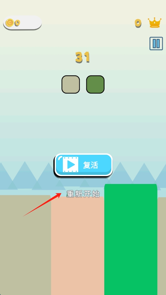 3、失败界面,点击重新开始,重置关卡,继续挑战,突破更高难度,点击按钮重新开始游戏。
