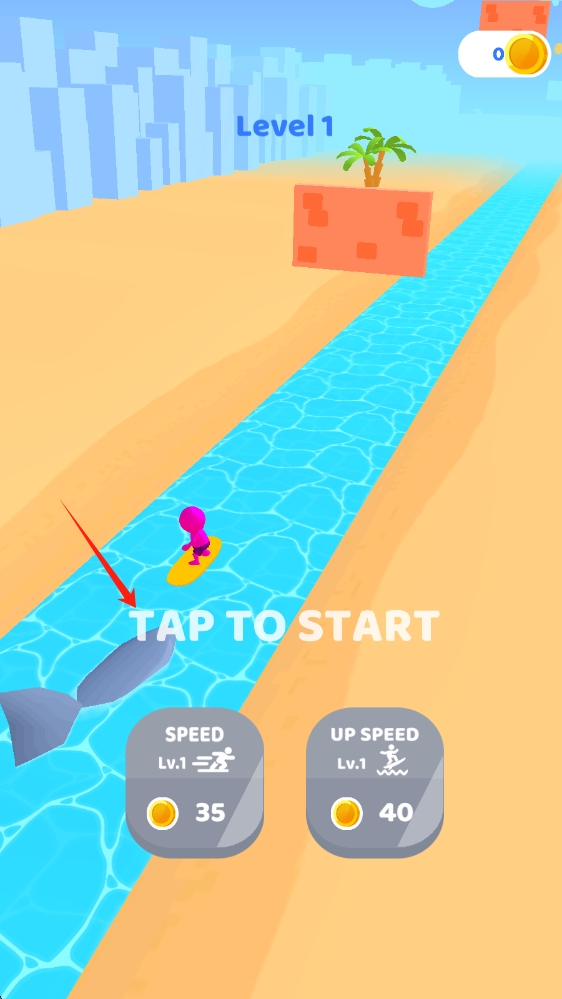1、关卡启动,点击TAP-TO-START,开启冲浪跑酷挑战,进入游戏流程,点击开始游戏。