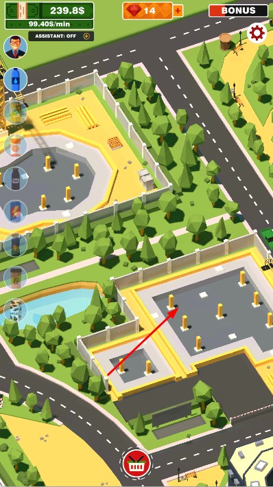 1、进入场景,点击Tap on construction to build factory提示位置,建造饮料工厂。