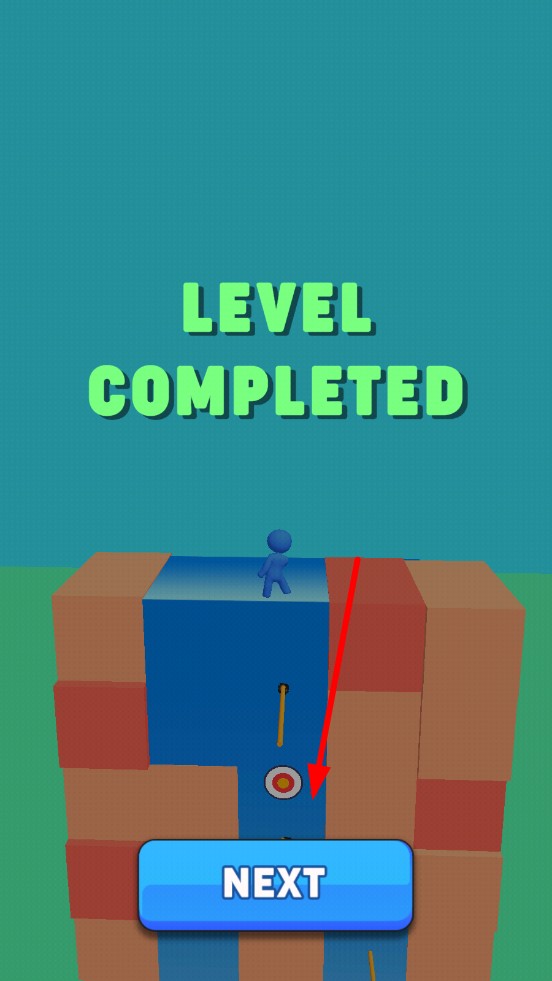 3、成功击破所有靶心后,小人抵达终点,弹出LEVEL COMPLETED界面;点击NEXT按钮进入下一关。