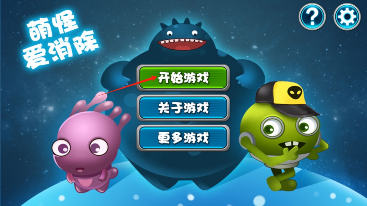 1、启动界面,点击开始游戏,进入萌怪爱消除的消除世界,点击进入到游戏当中。