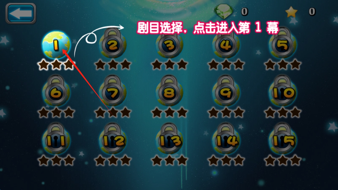 2、关卡选择,点击第1幕,开启首关消除挑战,匹配元素,点击选择当前的游戏关卡。