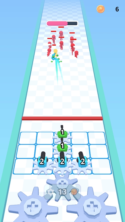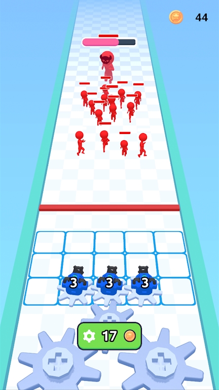 放置装备射击是融合放置合成与射击对抗的策略手游,玩家在方格区放置齿轮武器,通过合并升级提升火力,射击迎面而来的红色小人潮,借装备成长与布局策略,抵御一波波攻势,在数字成长与塔防博弈中突围。