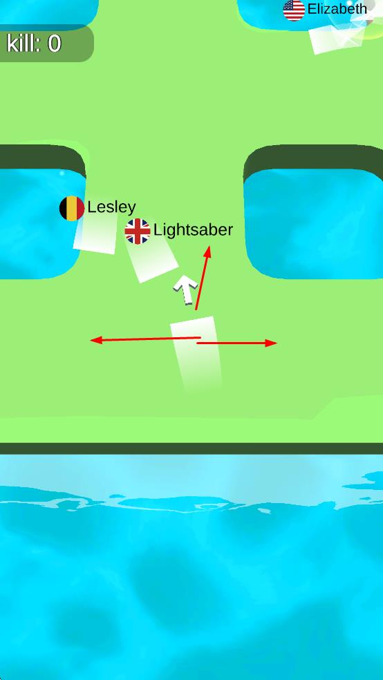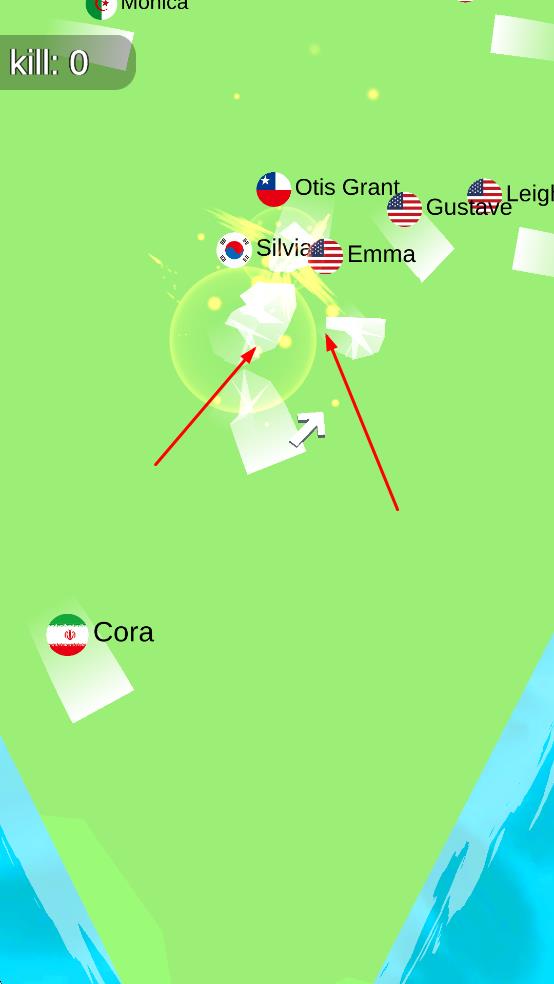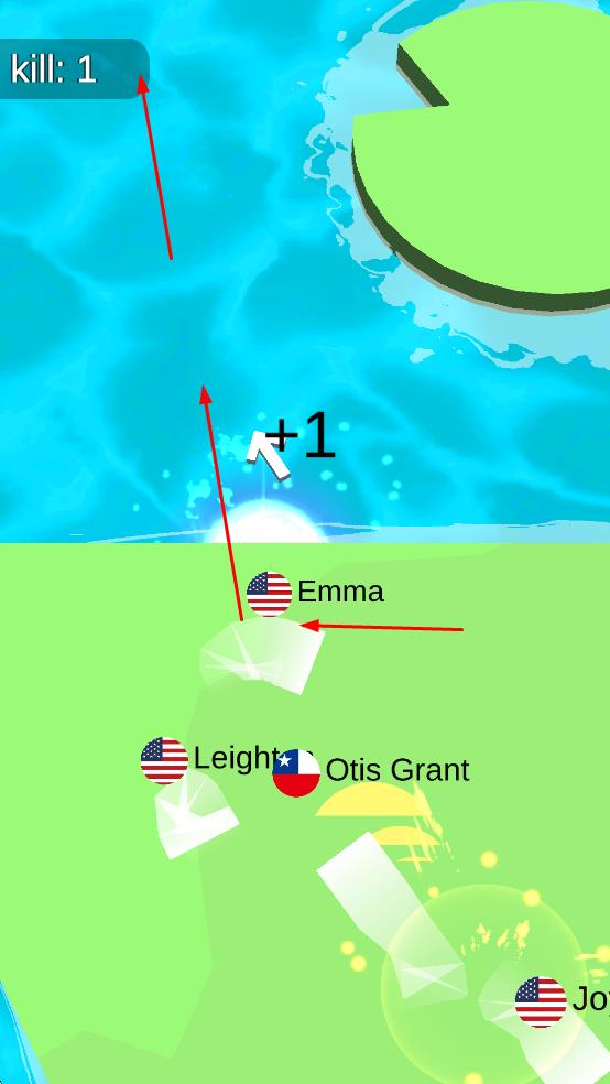 2、靠近其他玩家,通过碰撞将其挤入水域淘汰,提升kill计数。