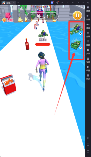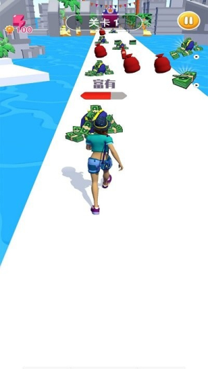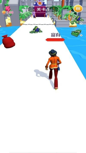4、玩家在跑酷过程中可以看到各种奖金,捡拾奖金不仅能增加财富,还能改变角色造型,收集越多造型越靓丽。