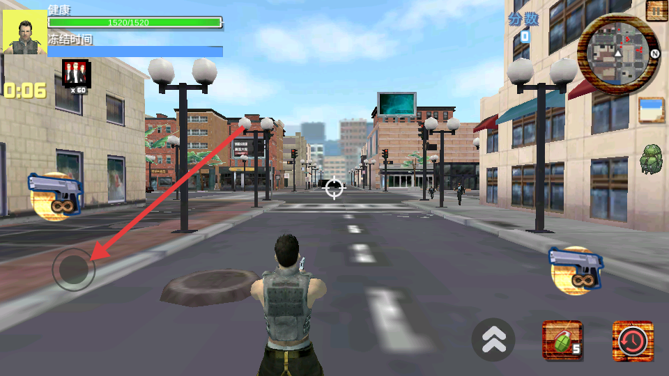 1、通过虚拟摇杆控制角色移动,双指滑动调整射击视角。