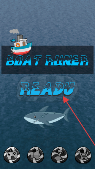 1、进入Boat Runner游戏首界面,点击READY按钮,准备开始游戏,操控船只在海面躲避鲨鱼等危险。