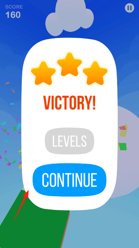 3、成功通关后,点击CONTINUE按钮,进入下一关,挑战更高难度,刷新分数记录。