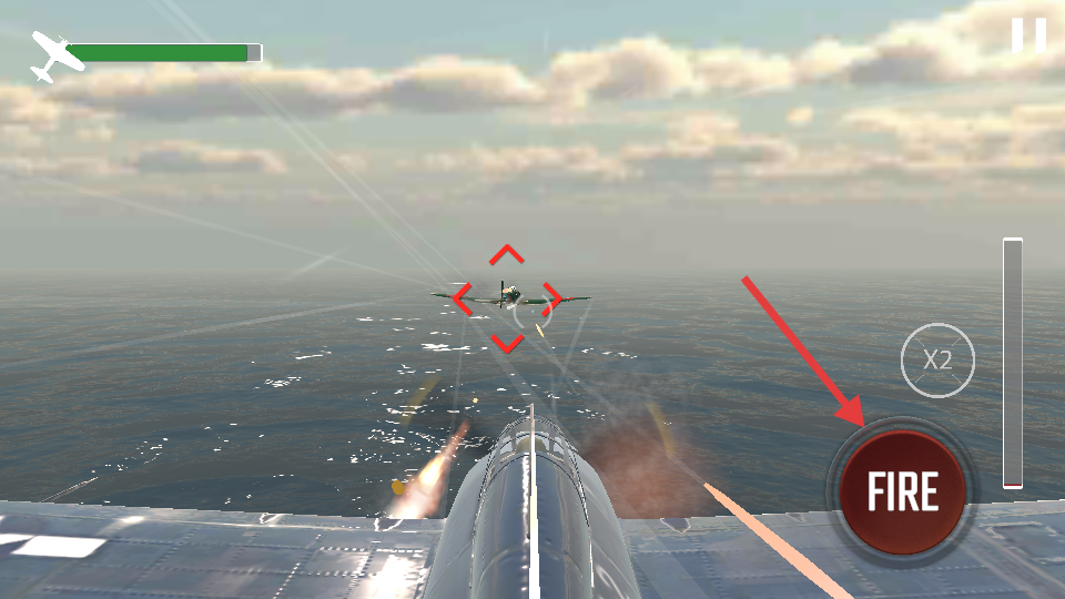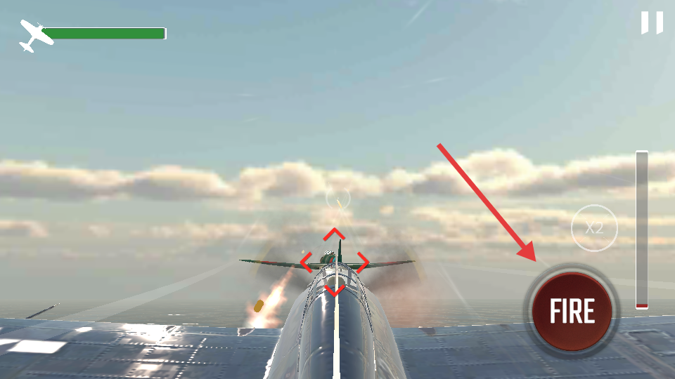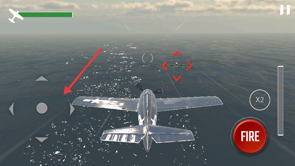 1、通过虚拟摇杆控制战机移动,右侧按钮发射机枪和导弹攻击敌机。