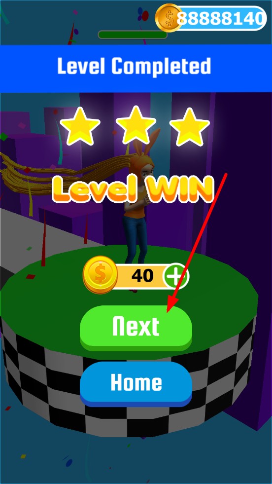 3、冲过终点后,依发丝剩余长度、通关时间评定星级,金币奖励可解锁兔耳、猫耳等新发型,点击Next挑战含移动锯片、旋转障碍的高难关卡。