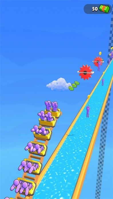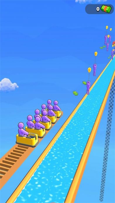 3、明快的视觉体验:滑车俯冲时溅起的水花、堆叠的彩色乘客、鲜亮的滑道与蓝天背景相衬,营造出轻松活泼的氛围,让闯关过程兼具视觉享受与解压效果。